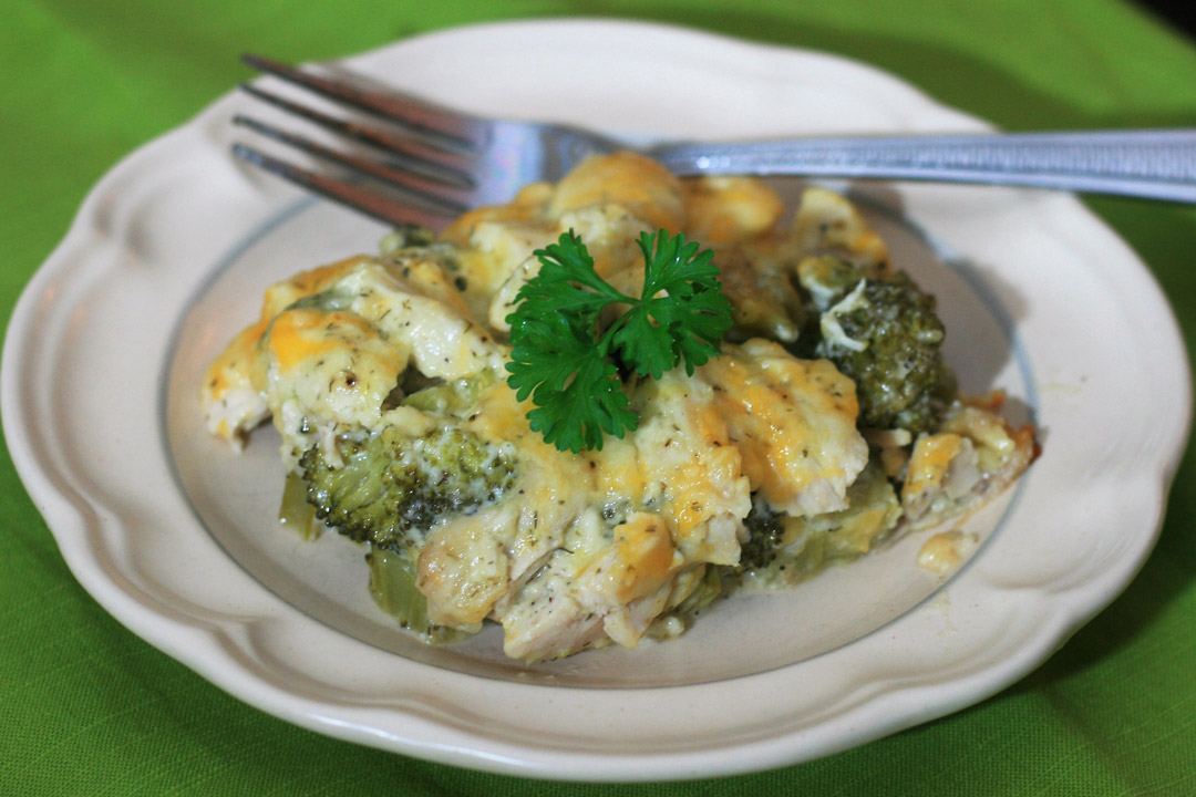 - Place broccoli florets in a 9×13-inch baking dish. Layer shredded chicken on top; press down onto broccoli.